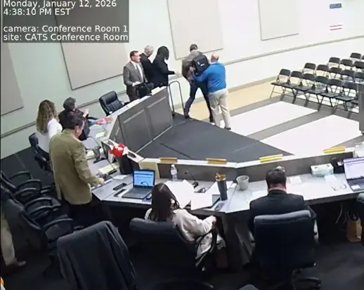 Several other adults in the room then stepped in and Angell was escorted out of the room as Kubiniec continued chiding him. “Somebody has anger management issues,” he said.