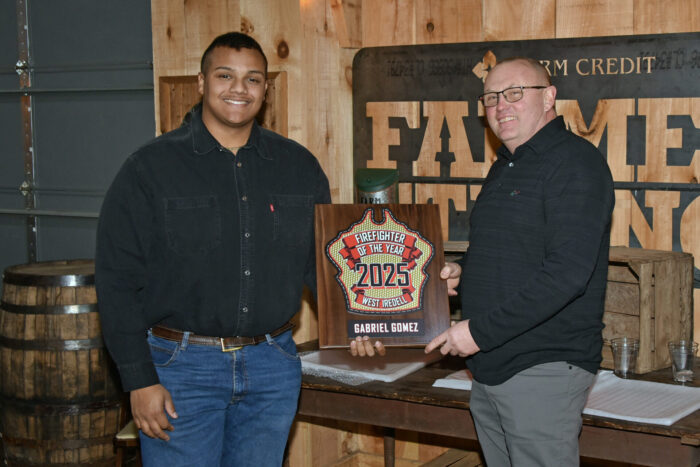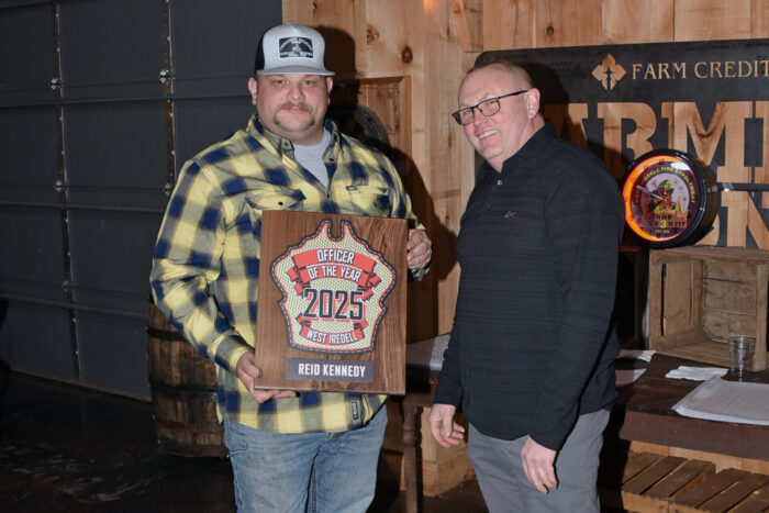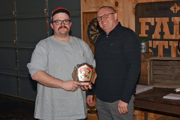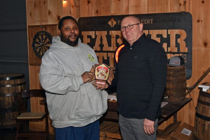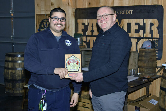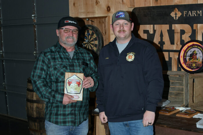 An award for the most training hours in 2025 was presented to Firefighter Keith Bills (left), who is pictured with Assistant Chief Josh Deal.